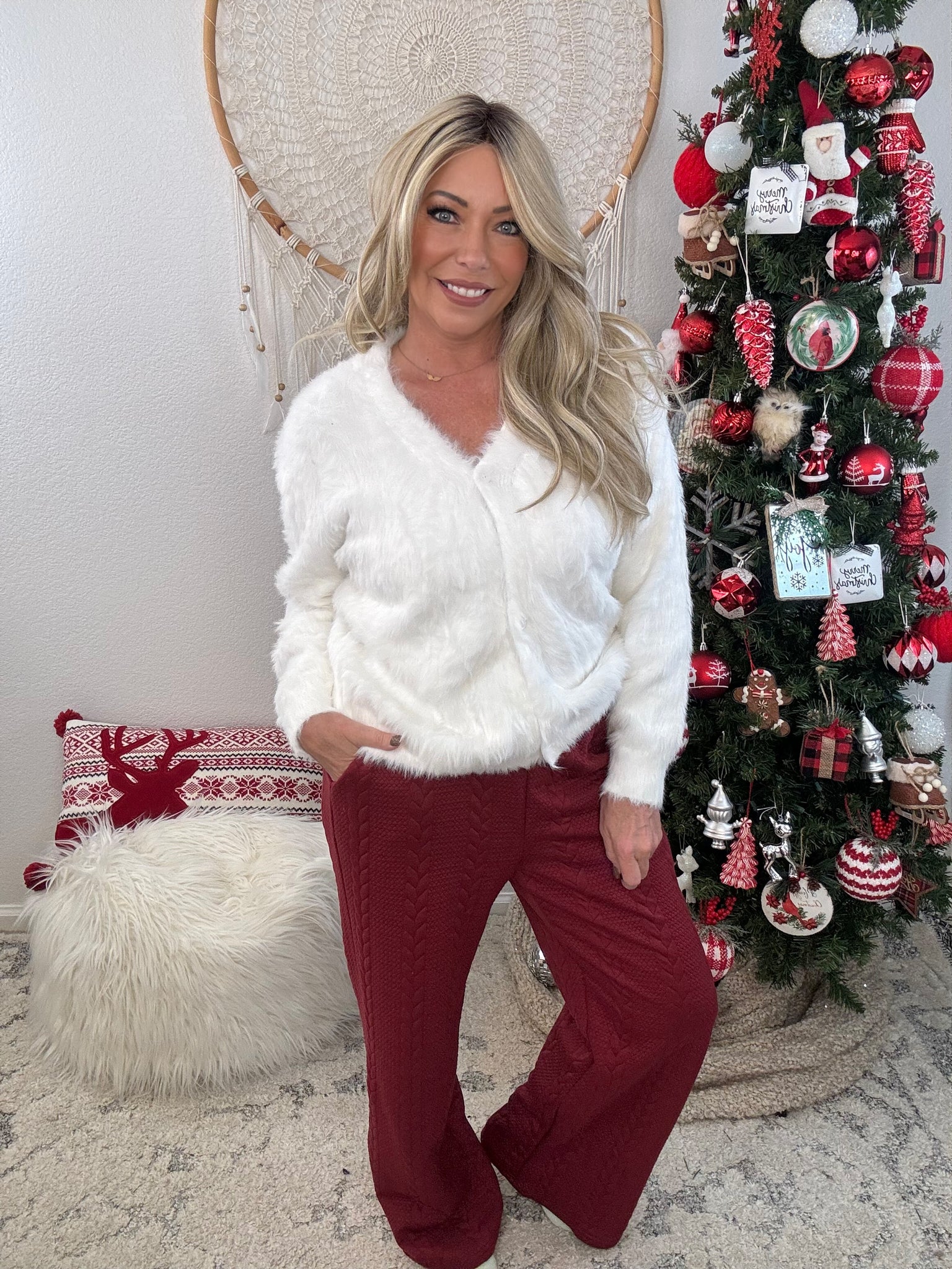 Wrap yourself in warmth and whimsy with these Cabin Cozy Cable Knit Pants. Perfect for chilly evenings by the campfire or lazy days at home, their textured cable knit adds a playful touch to your lounging look. Stay snug and stylish while you relax in ultimate comfort.