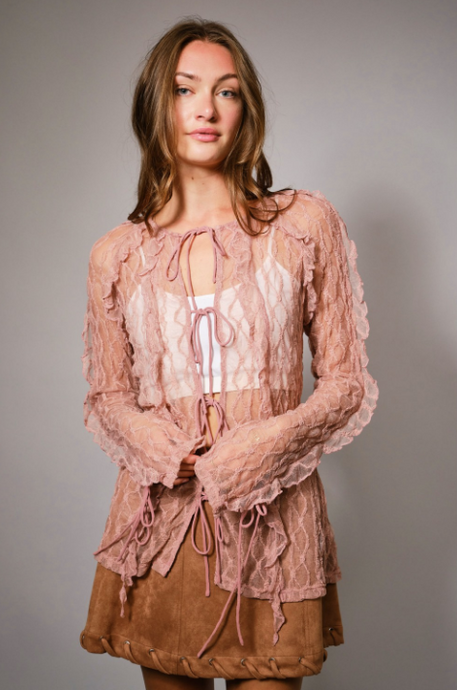 Whispered Lace Tie Front Blouse-Dusty Rose