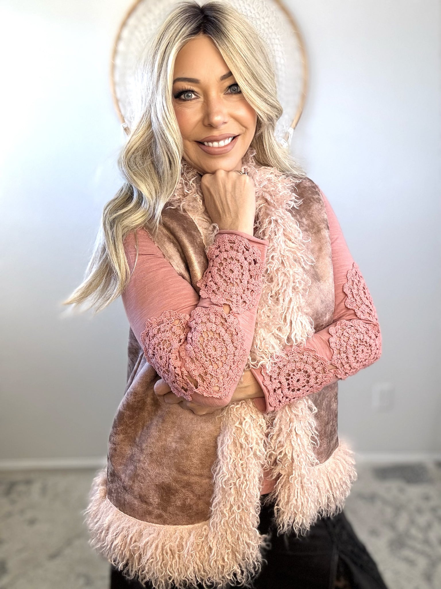 Effortlessly blend comfort with artisanal charm in this sophisticated henley, featuring delicate crochet detailing along the long sleeves. The half-button front and classic round neckline create a versatile layering essential that transitions seamlessly from day to evening. Crafted with a boho sensibility, this piece pairs beautifully with everything from denim to flowing skirts, offering understated elegance for the modern wanderer.